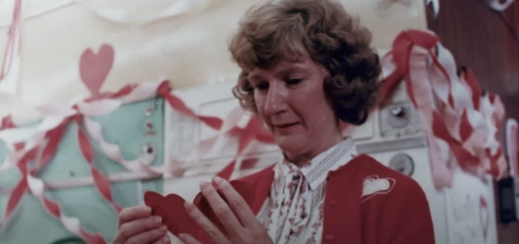 This is one of my favorite scenes. Harry in his miner costume, stalking through the fog to kill anyone who celebrates Valentine’s, is a core memory. The combination of small-town romantic drama with the aesthetic of blood and Valentine’s never fails to strike a chord with me.