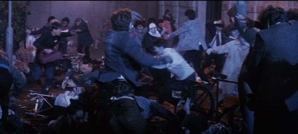 In an interview, director Tobe Hooper remarked that he wanted to make an old-fashioned Hammer film. This influence is apparent in the overt sexual tone, but also in so many of the visuals. One particular dream sequence has all the vivid colors and gothic imagery that one would expect. If there is any real issue with Lifeforce, it’s that in blending so many influences and sources—a Lovecraftian sci-fi horror novel, ‘60s and ‘70s Hammer horror—the result is a deeply uneven but fascinating film.
